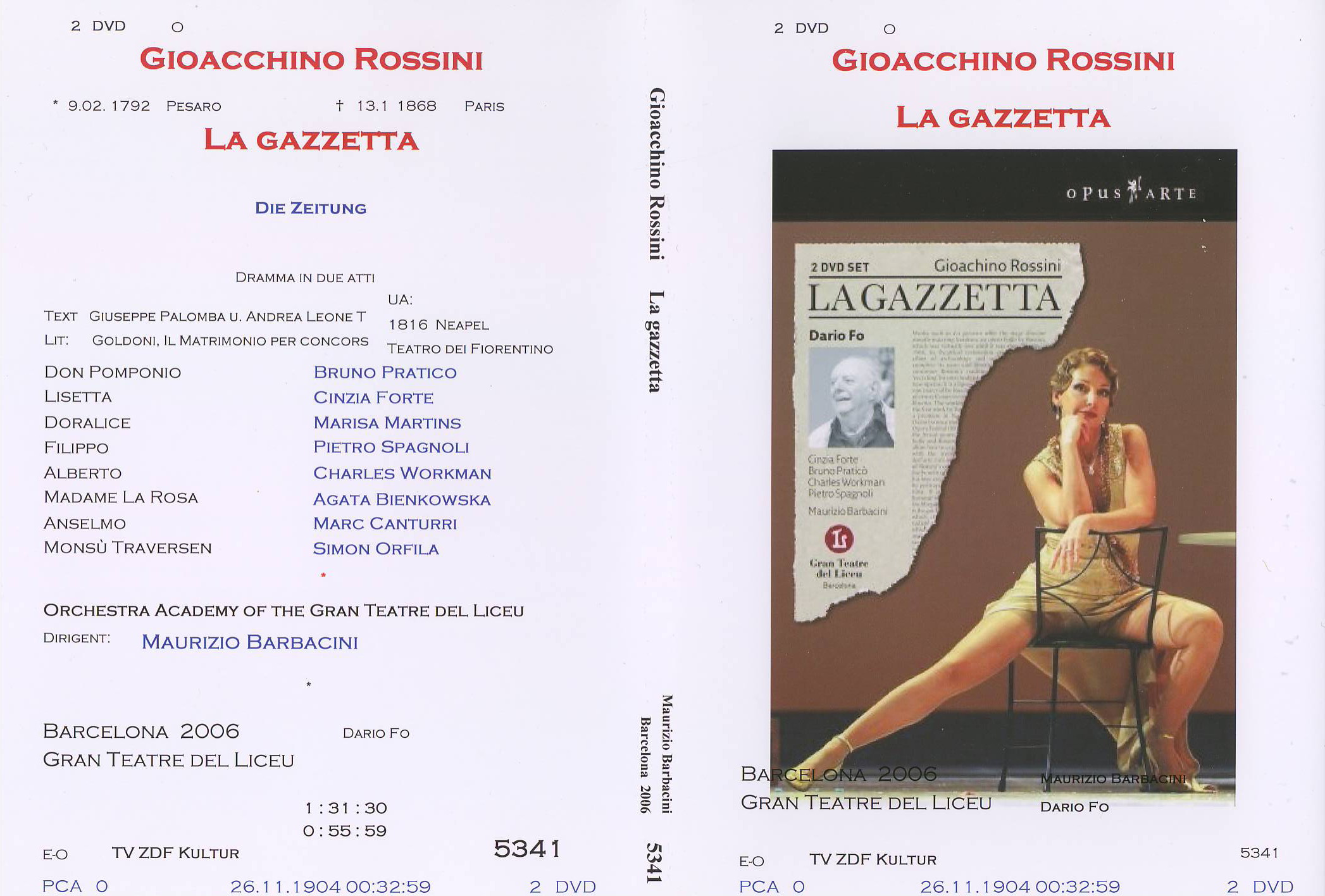| zdf_kultur Sonntag 19.09.2013, 21:45 - 00:20 Uhr La Gazetta Oper von Gioachino Rossini Lisetta - Cinzia Forte Don Pomponio - Bruno Pratico Filippo - Pietro Spagnoli Alberto - Charles Workman Madame La Rose - Agata Bienkowska Doralice - Marisa Martins Monsu Traversen - Simon Orfila Anselmo - Marc Canturri Orchestra Academy of the Gran Teatre del Liceu Intermezzo Choir Leitung: Maurizio Barbacini Regisseur: Dario Fo Länge: 145 min. Musiktheater, Spanien, 2006 Der Neapolitaner Don Pomponio reist - mit seiner Tochter Lisetta im Schlepptau - durch die Welt, um einen passenden Ehemann für sie zu finden - per Zeitungsannonce. Nach einer ganzen Reihe von gänzlich ungeeigneten Bewerbern und jeder Menge absurder Situationen darf Lisetta schließlich doch ihren heimlichen Geliebten heiraten. Der italienische Dramatiker Dario Fo hat die Oper, der übrigens ein Stück des italienischen Komödiendichters Carlo Goldoni zu Grunde liegt, im neapolitanischen Dialekt inszeniert. |