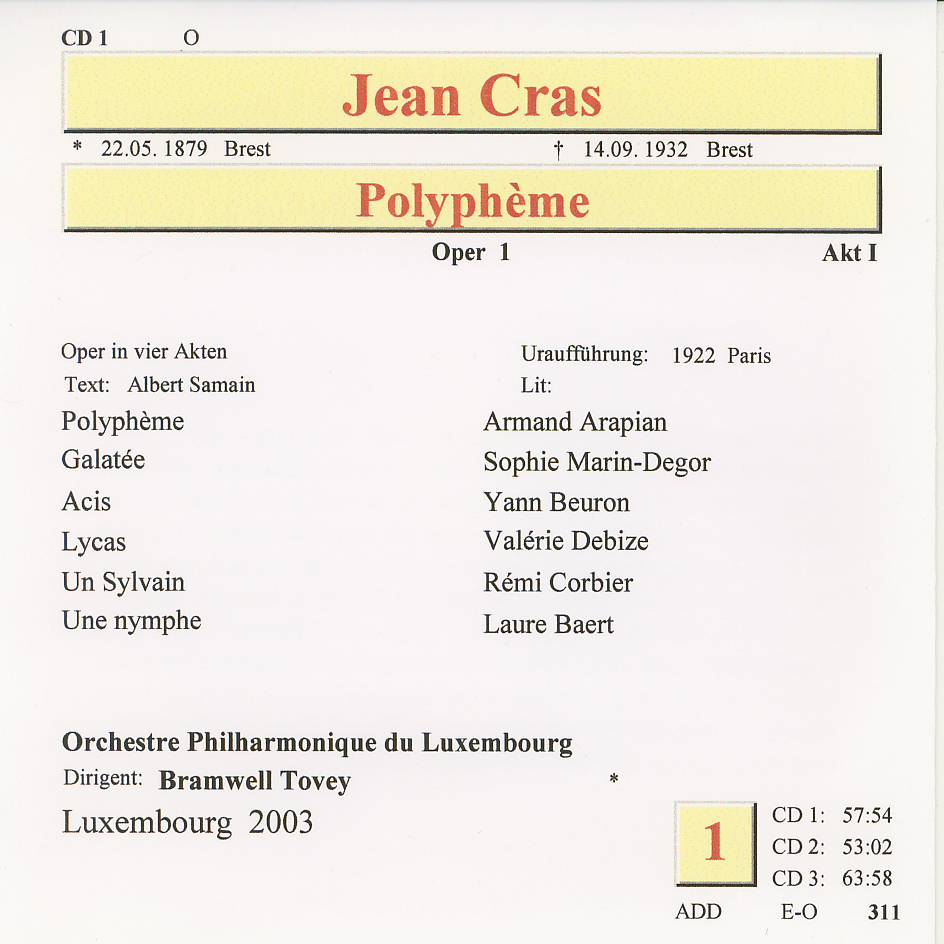 | Cras - Polyphème - 2003 Luxembourg dir Bramwell Tovey 311,01 |