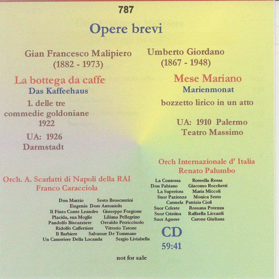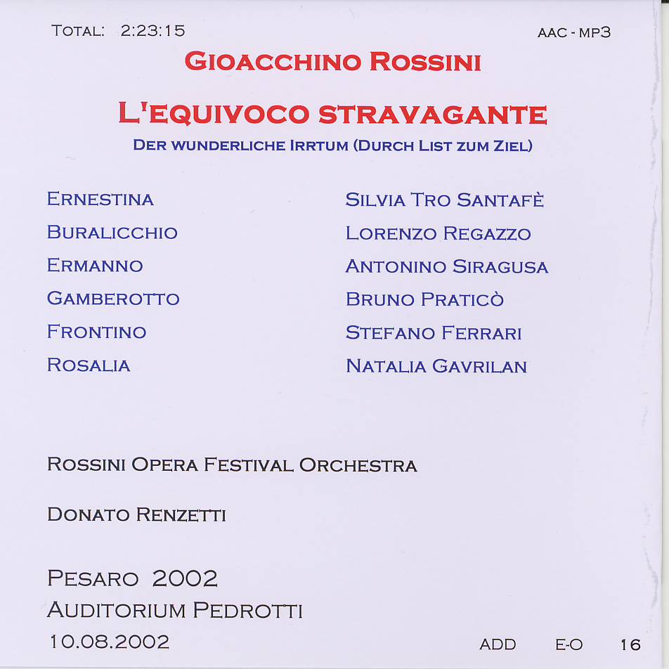 | DON BUCEFALO Orchestra Internazionale d'Italia Cond. Massimiliano Caldi. Cast: Il Conte di Belprato - Aldo Caputo Don Bucefalo - Filippo Morace Gianetta - Francesca De Giorgi Carlino - Massimiliano Silvestri Don Marco - Graziano De Pace Rosa - Angelica Girardi Agata - Date Mizuki - |