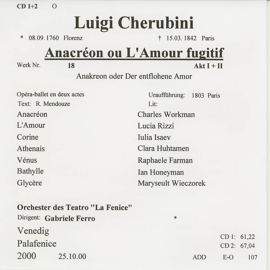 | ANGÉLIQUE Orchestra e Coro del Teatro Massimo di Palermo Cond. Yoram David. Cast: Angélique - Gaëlle Méchaly Bonifaz - Carmelo Caruso Charlot - Luis Masson Ein Italiener - Bruce Fowler Ein Engländer - Max René Cosotti Ein Neger - George Hawkins Der Teufel - Renzo Casellato - |
