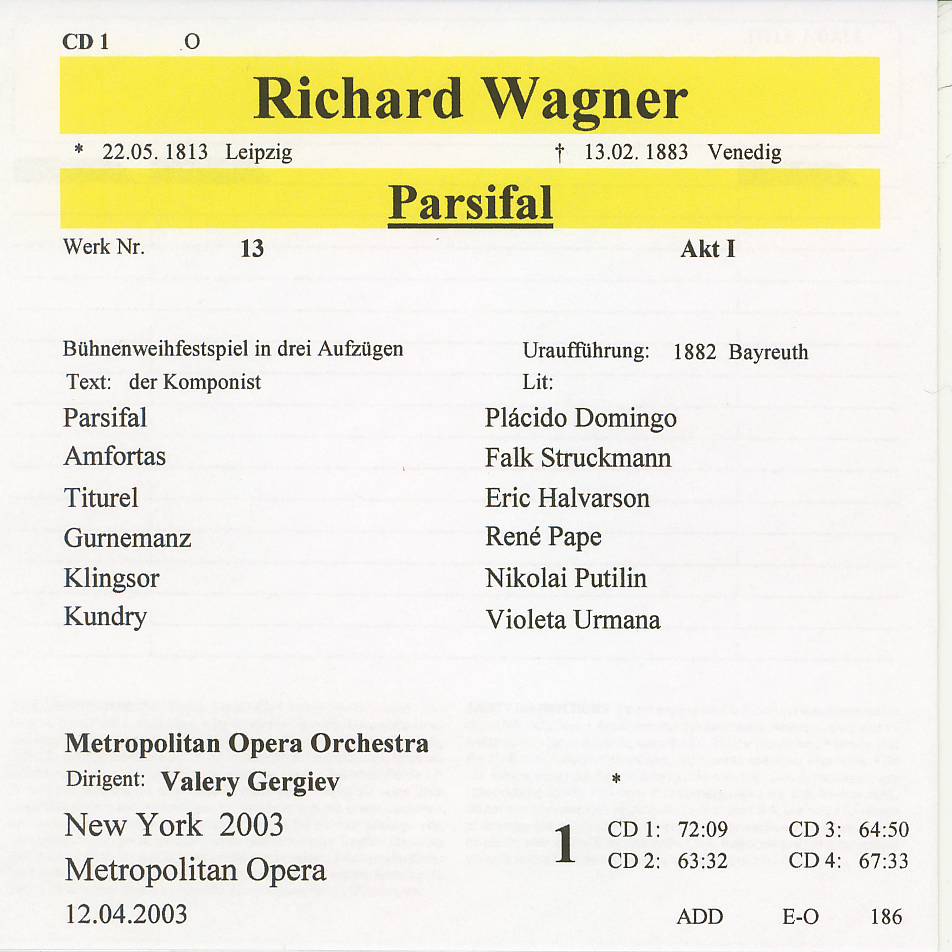 Münchner Philhilharmoniker Cond. Rudolf Kempe. Cast: - - - - - - - - |