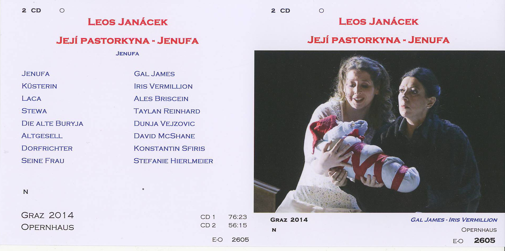 | JEJÍ PASTORKYNA - JENUFA Grazer Philharmonische Orchester Cond. Dirk Kaftan. Cast: Jenufa - Gal James Küsterin - Iris Vermillion Laca - Ales Briscein Stewa - Taylan Reinhard Die alte Buryja - Dunja Vejzovic Altgesell - David McShane Dorfrichter - Konstantin Sfiris Seine Frau - Stefanie Hierlmeier |