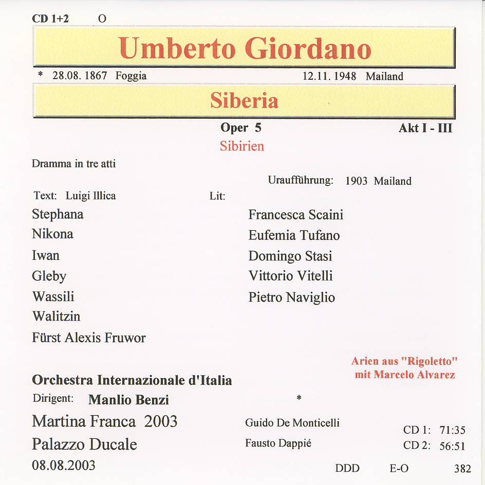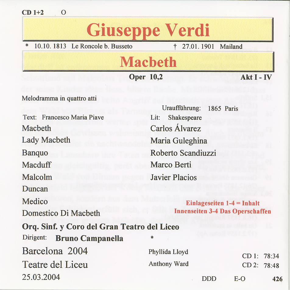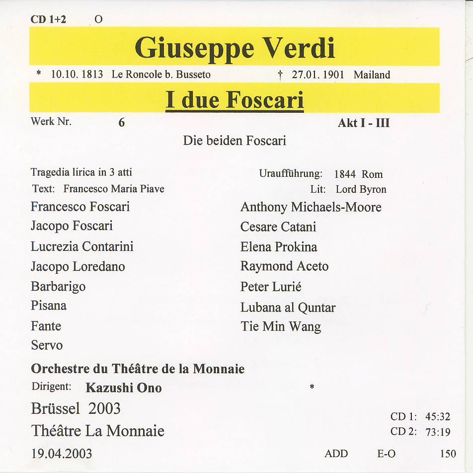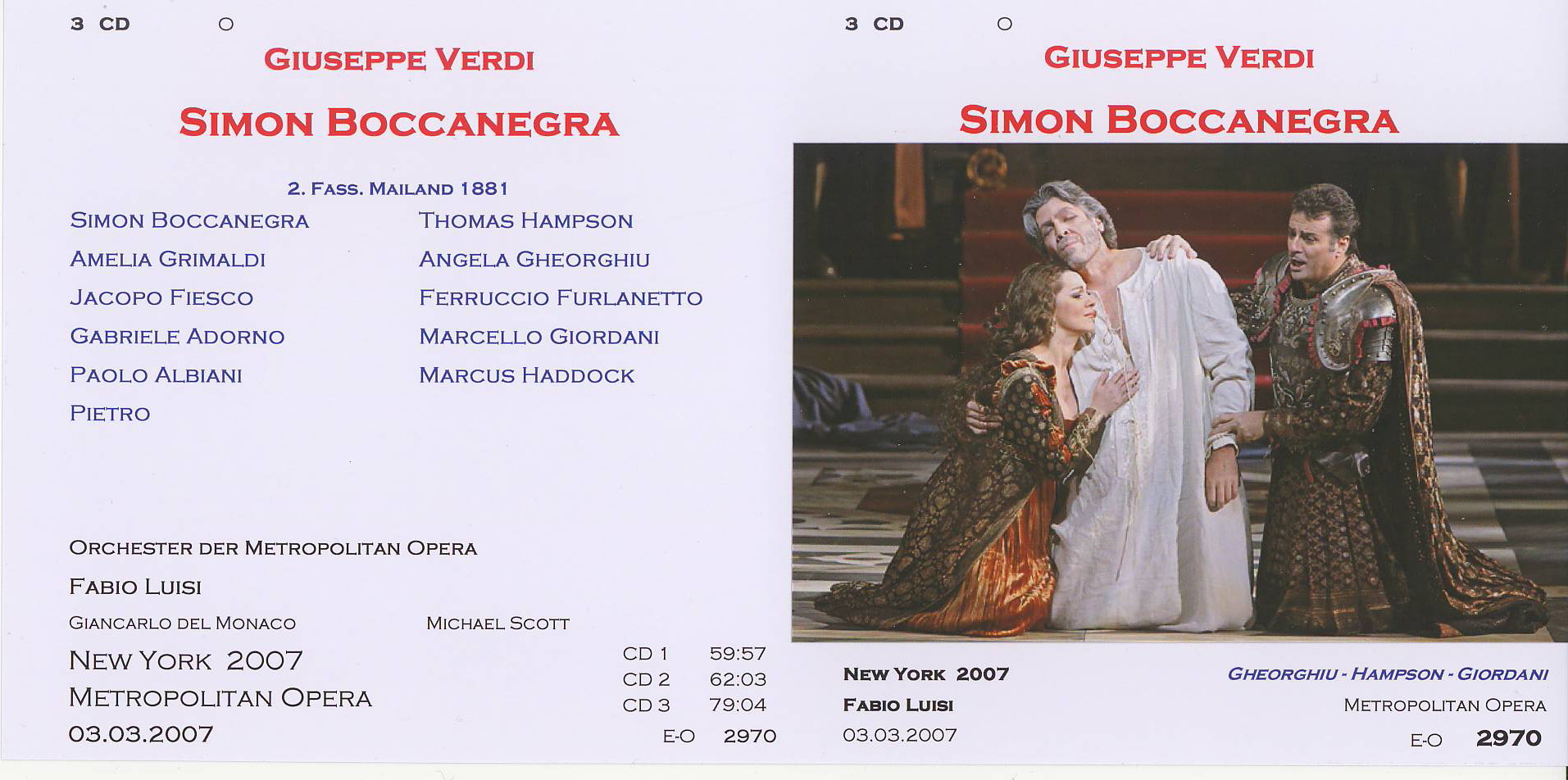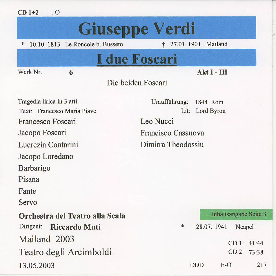 | Dienstag 08. Jänner 2013 00:08 Giuseppe Verdi: "Oberto, Conte di San Bonifacio" Samuel Ramey (Oberto) Maria Guleghina (Leonora) Violeta Urmana (Cuniza) Stuart Neill (Riccardo) Sara Fulgoni (Imelda) London Voices, Academy of St. Martin in the Fields; Dirigent: Sir Neville Marriner (aufgenommen im August 1996 in London) |