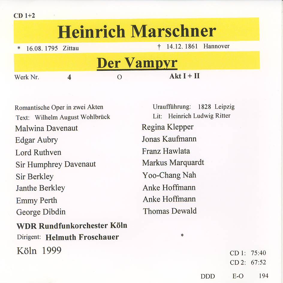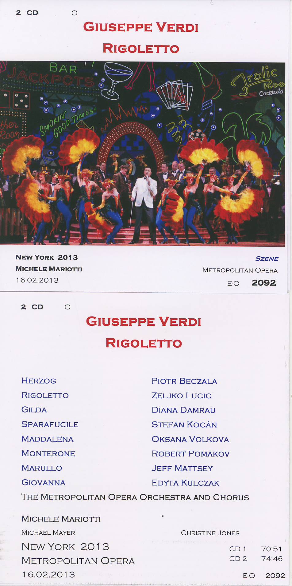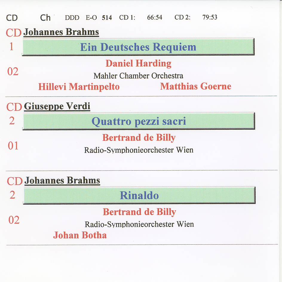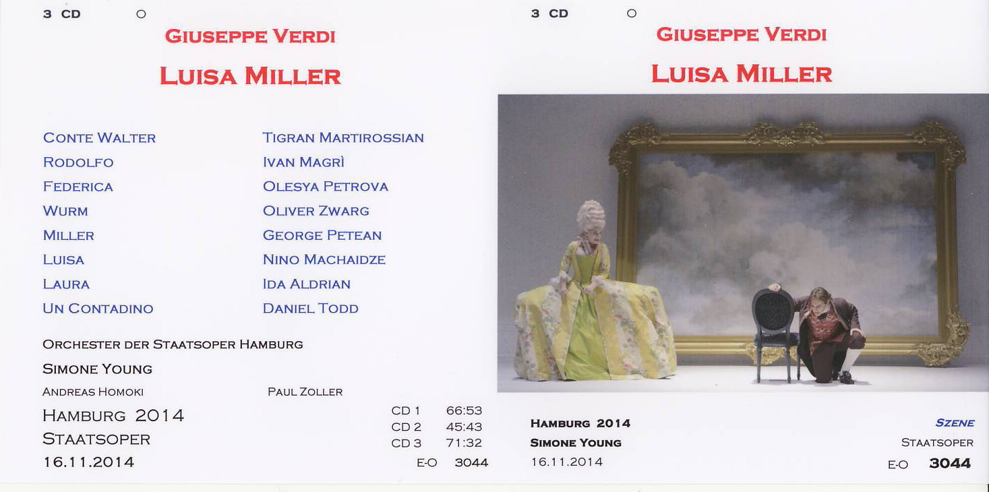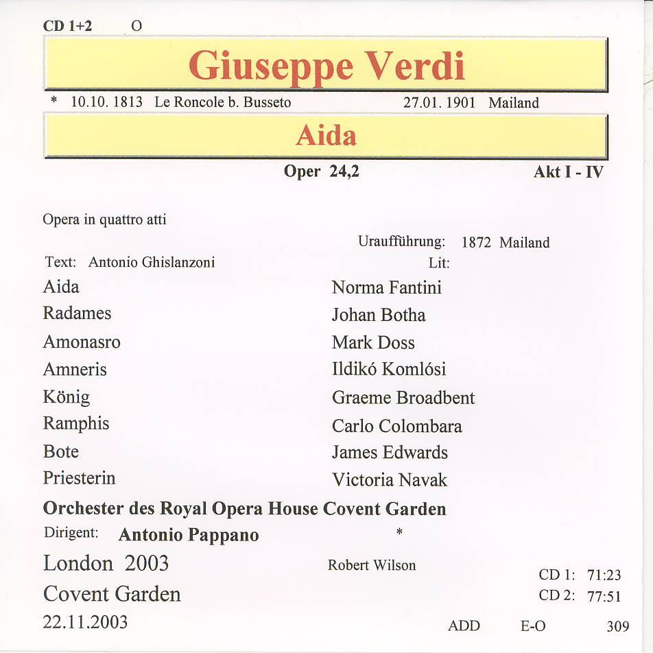 | Dienstag 08. Jänner 2013 00:08 Giuseppe Verdi: "Oberto, Conte di San Bonifacio" Samuel Ramey (Oberto) Maria Guleghina (Leonora) Violeta Urmana (Cuniza) Stuart Neill (Riccardo) Sara Fulgoni (Imelda) London Voices, Academy of St. Martin in the Fields; Dirigent: Sir Neville Marriner (aufgenommen im August 1996 in London) |