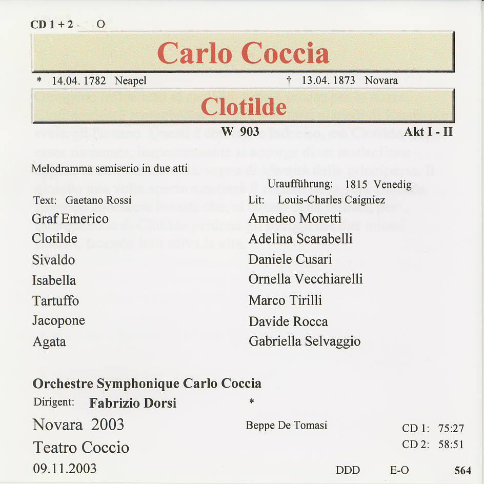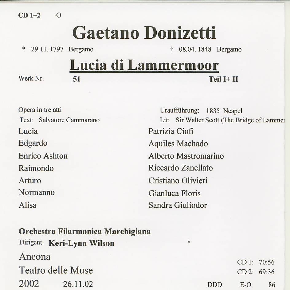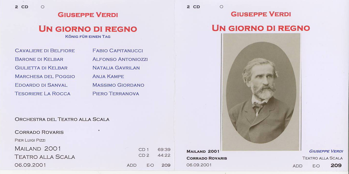 | OBERTO, CONTE DI SAN BONIFACIO Orchestra Filarmonica Marchigiana Cond. Daniele Callegari. Cast: Cuniza - Gabriela Colecchia Riccardo - Fabio Satori Oberto - Michele Pertusi Leonora - Gianna de Liso Imelda - Antonella dalla Pozza - - - |
