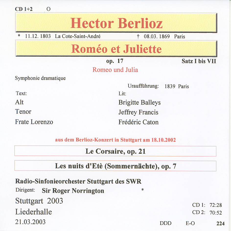 | GIULIETTA E ROMEO Chor des Bayerischen rundfunks. Cond. . Cast: Capellio - Adele - Giulietta - Romeo Montecchi - Tebaldo - Frate Lorenzo - - - |