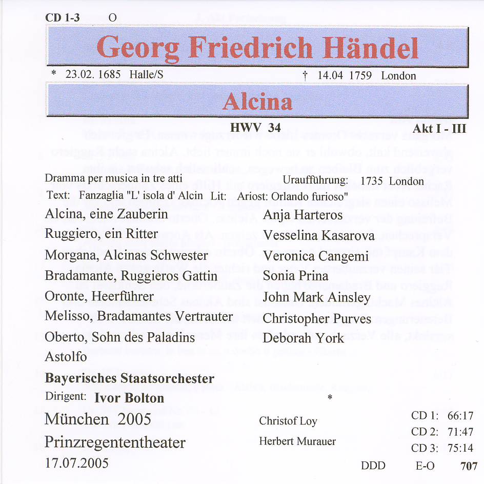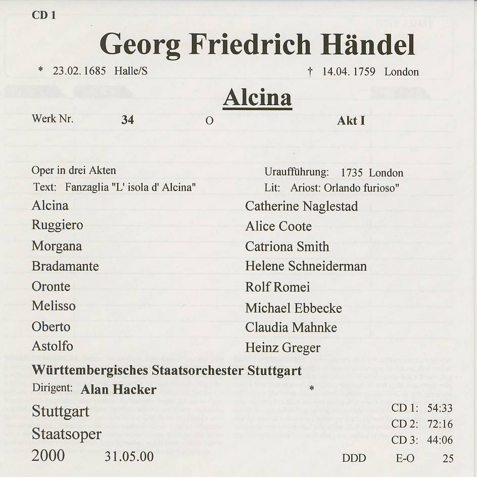 | ORLANDO FURIOSO Cond. . Cast: Orlando - Angelica - Alcina - Bradamante - Ruggiero - Astolfo - Medoro - - |