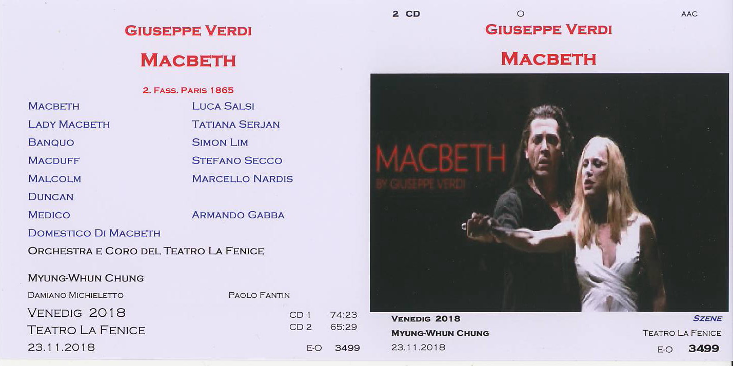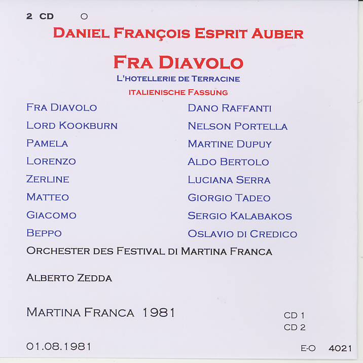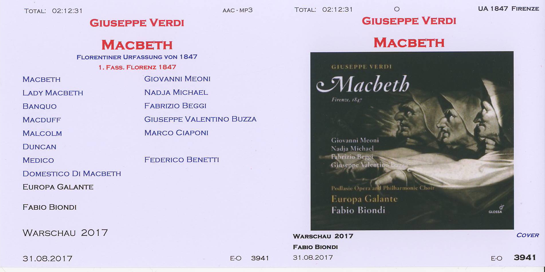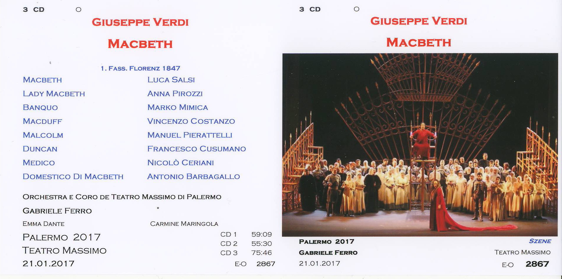 | FESTIVAL DI MACERATA Giuseppe Verdi: Oberto, Conte di San Bonifacio Dramma in zwei Akten; In italiensicher Sprache Oberto ............... Michele Pertusi Riccardo ............. Fabio Sartori Leonora .............. Giovanna de Liso Cuniza ............... Gabriela Colecchia Imelda ............... Antonella dalla Pozza "Vincenzo Bellini" Coro Lirico Marchigiano Orchestra Filarmonica Marchigiana Leitung: Daniele Callegari Aufnahme vom 1. August 1999 |