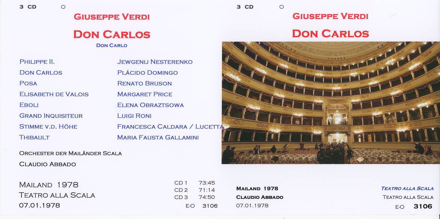 Teatro alla Scala Cond. Claudio Abbado. Cast: - Luciano Pavarotti - Savastano - - - - - - |