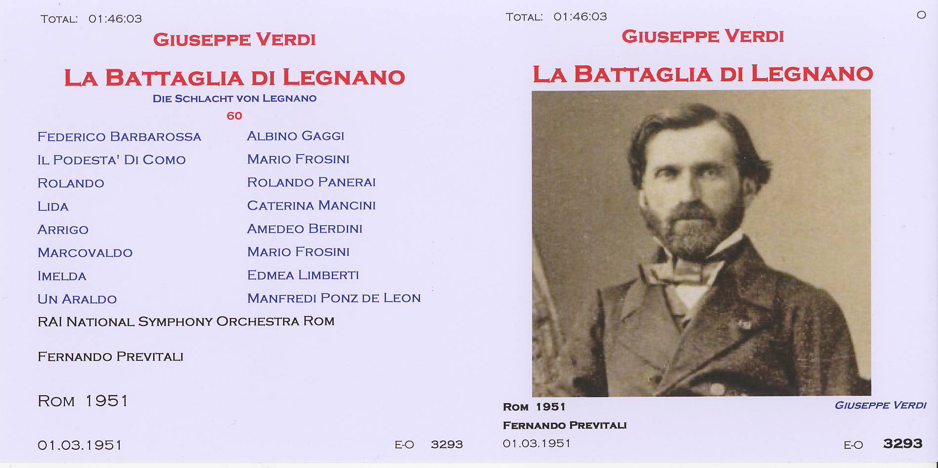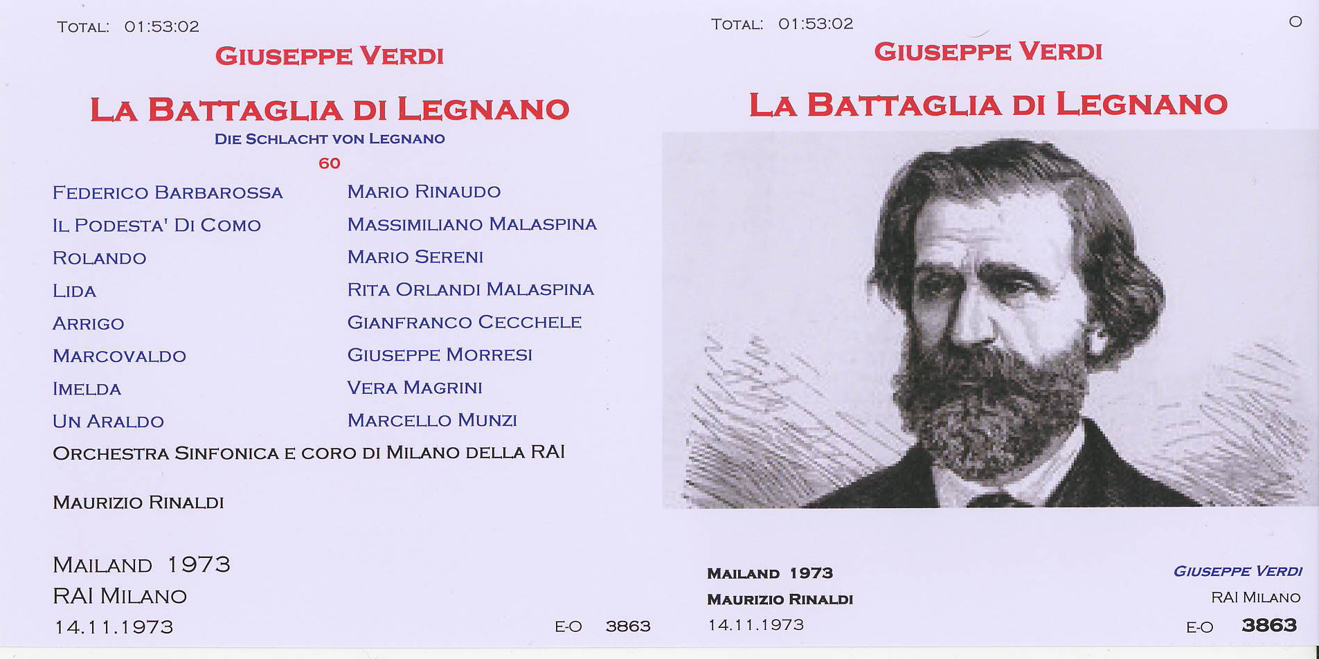 | OBERTO, CONTE DI SAN BONIFACIO Münchner Rundfunkorchester Cond. Lamberto Gardelli. Cast: Cuniza - Ruza Baldani Riccardo - Carlo Bergonzi Oberto - Rolando Panerai Leonora - Ghena Dimitrova Imelda - Alison Browner - - - |
