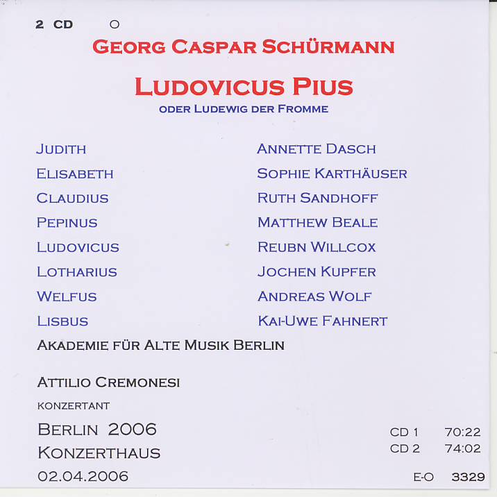 | TEUZZONE Le Concert des Nations Cond. Jordi Savall. Cast: Teuzzone - Paolo Lopez Zidiana - Marta Fumagalli Zelinda - Sonia Prina Cino - Roberta Mameli Sivenio - Furio Zanasi Egaro - Aurelio Schiavoni Troncone und Argonte - Carlo Allemano - |