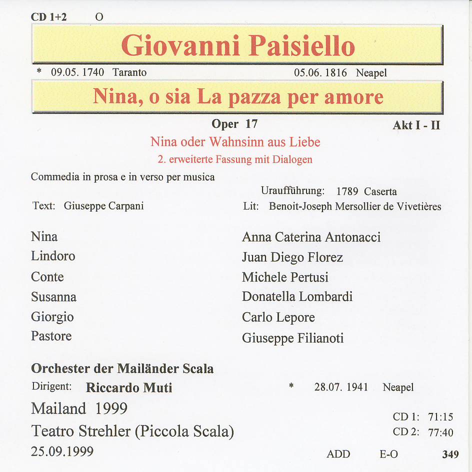 | LA SPOSA DI MESSINA Virtuosi Brunensis Cond. Antonino Fogliani. Cast: Donna Isabella - Jessica Pratt Don Emanuele - Filippo Adami Don Cesare - Armando Ariostini Beatrice - Wakako Ono Diego - Maurizio Lo Piccolo - - - |