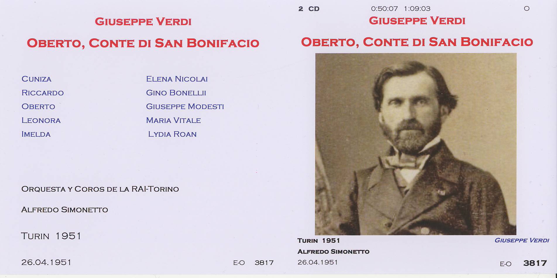 | OBERTO, CONTE DI SAN BONIFACIO Theatro Com. Bologna Cond. . Cast: Cuniza - Riccardo - Oberto - Leonora - Imelda - - - - |