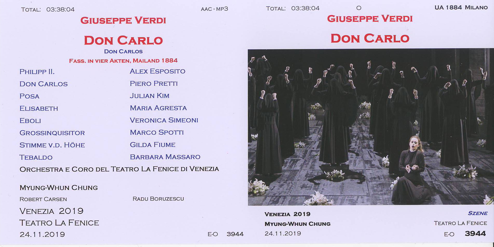 | LA SPOSA DI MESSINA Cond. . Cast: Donna Isabella - Don Emanuele - Don Cesare - Beatrice - Diego - - - - |