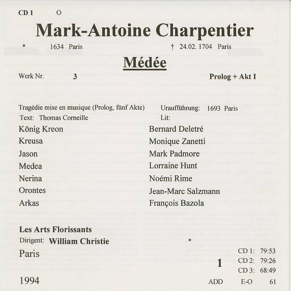 | LA TOISON D'OR Cond. . Cast: Hissiphile - Medée - Arcas - Jason - Calliop - La Sybille - - - |