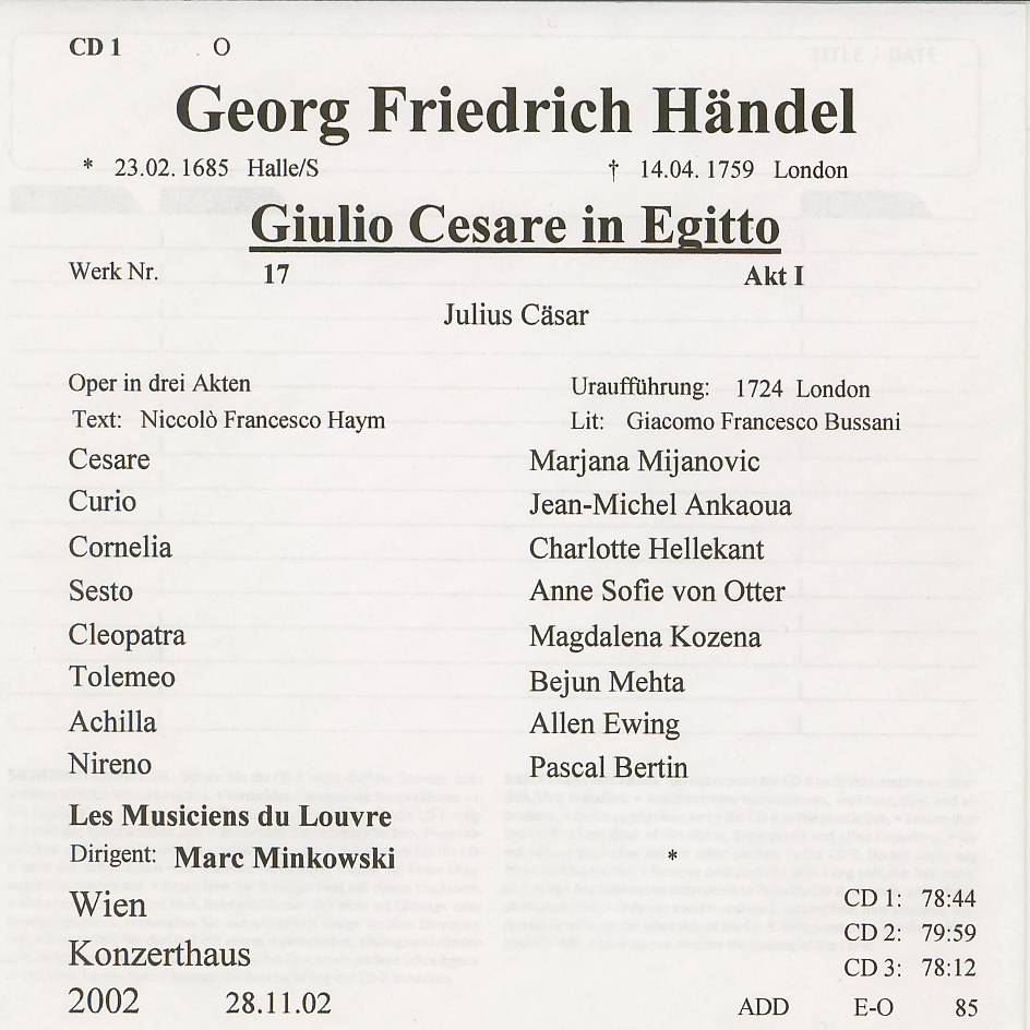 | TITO MANLIU Le Concerto de Cavalieri Cond. Marcello Di Lisa. Cast: Tito Manlio - Magnus Staveland Manlio - Vivica Genaux Servilia - Ann Hallenberg Vitellia - Mari Eriksmoen Geminio - Lucio - Mary-Ellen Nesi Decio - Mary-Ellen Nesi Lindo - |