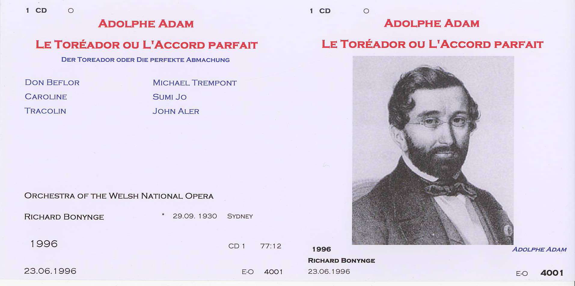 | Adam - Le Toréador ou L'Accord parfait - 1996 Cardiff dir Richard Bonynge 4001,01 |