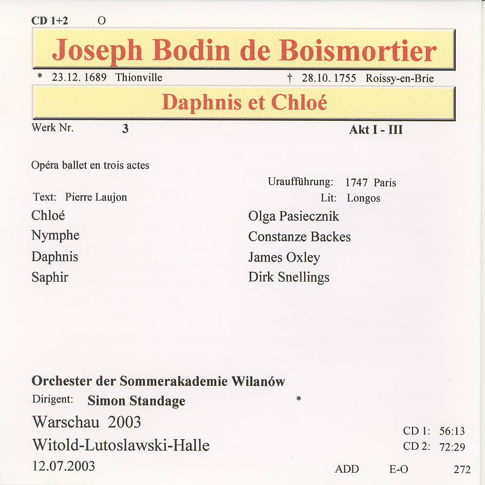 | Boismortier - Daphnis et Chloé - 2003 Warschau dir Simon Standage 272,01 |
