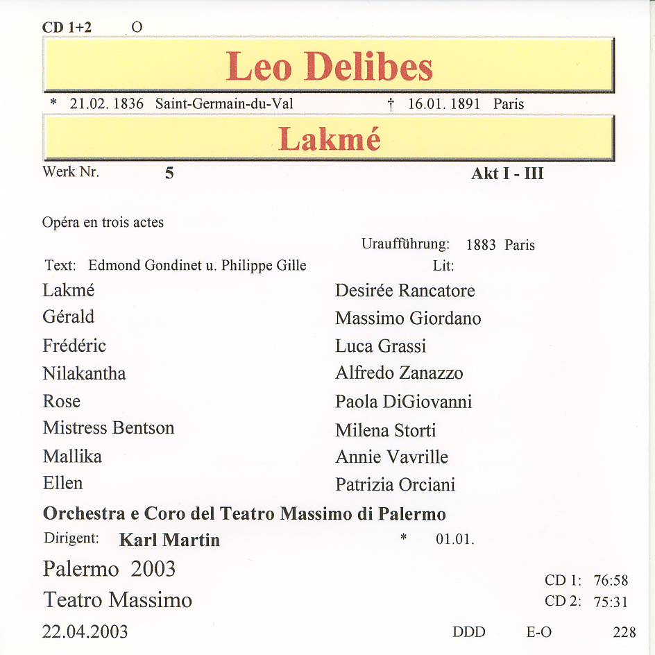 | Delibes - Lakmé - 2003 Palermo dir Karl Martin 228,01 |