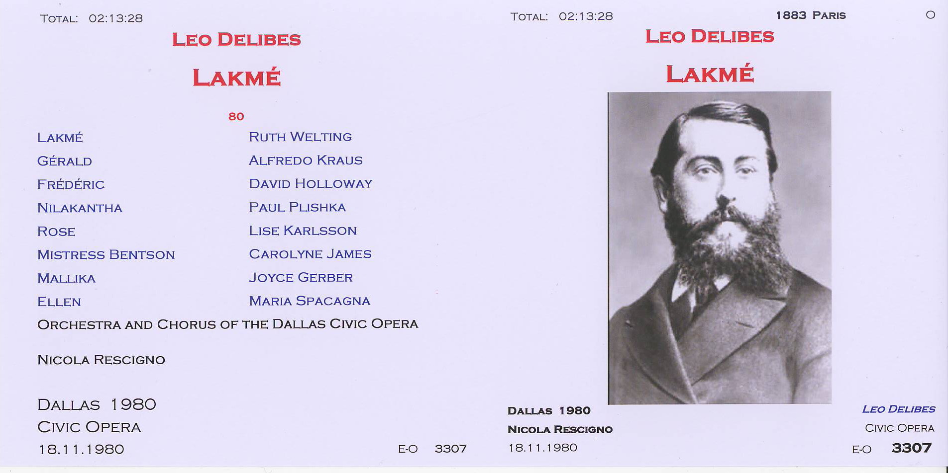 | Delibes - Lakmé - 1980 Dallas dir Nicola Rescigno 3307,01 |
