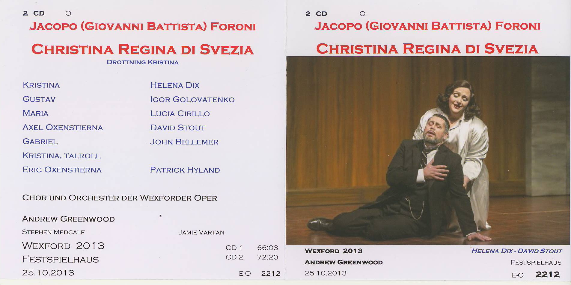| Foroni - Christina Regina di Svezia - 2013 Wexford dir Andrew Greenwood 2212,01 |
