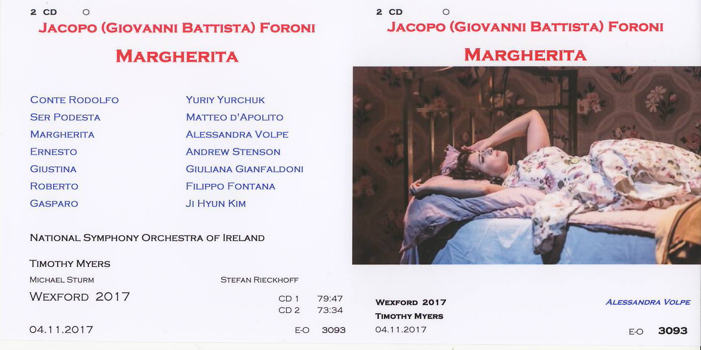 | MARGHERITA National Symphony Orchestra of Ireland Cond. Timothy Myers Conte Rodolfo - Yuriy Yurchuk Ser Podesta - Matteo d'Apolito Margherita - Alessandra Volpe Ernesto - Andrew Stenson Giustina - Giuliana Gianfaldoni Roberto - Filippo Fontana Gasparo - Ji Hyun Kim - |