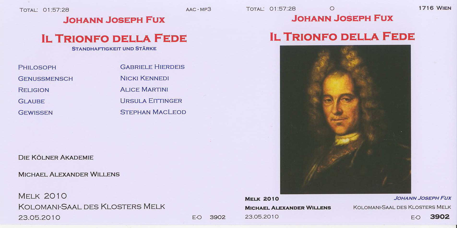 | Fux - Il Trionfo della Fede - 2010 Melk dir Michael Alexander Willens 3902,01 |