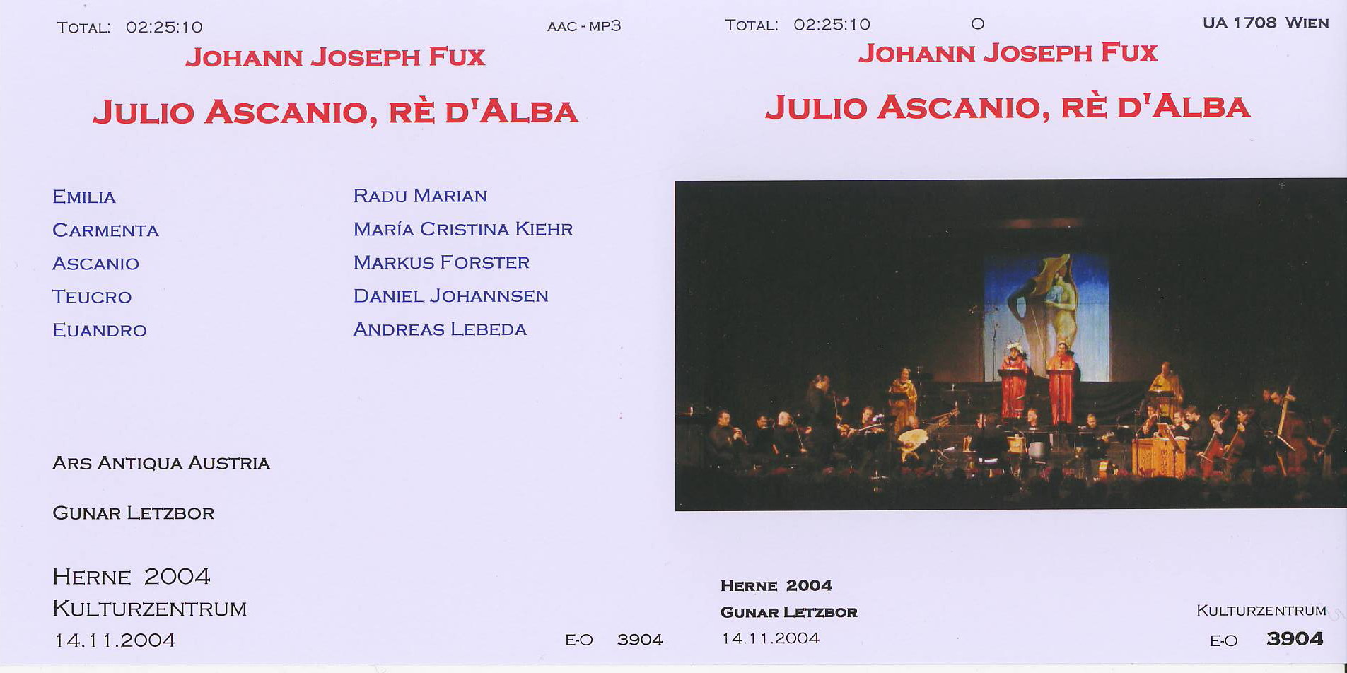 | Fux - Julio Ascanio, rè d'Alba - 2004 Herne dir Gunar Letzbor 3904,01 |