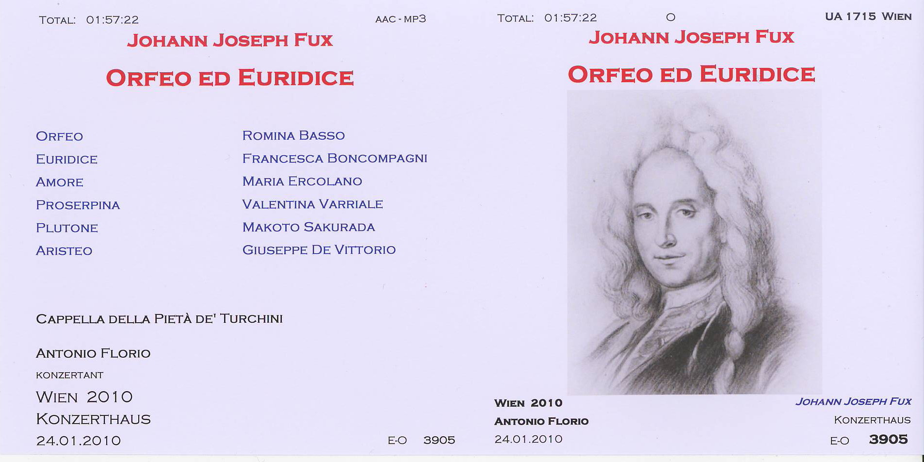 | Fux - Orfeo ed Euridice - 2010 Wien dir Antonio Florio 3905,01 |