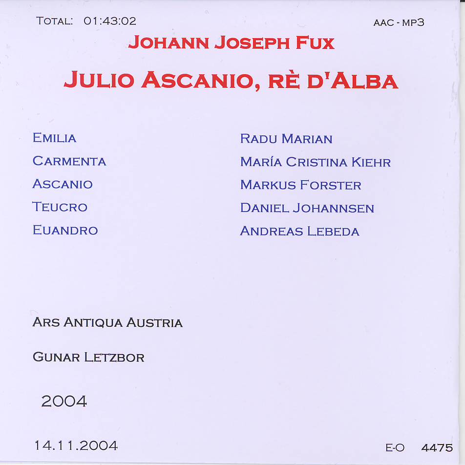 | Fux - Julio Ascanio, rè d'Alba - 2004 Herne dir Gunar Letzbor 4475,01 |
