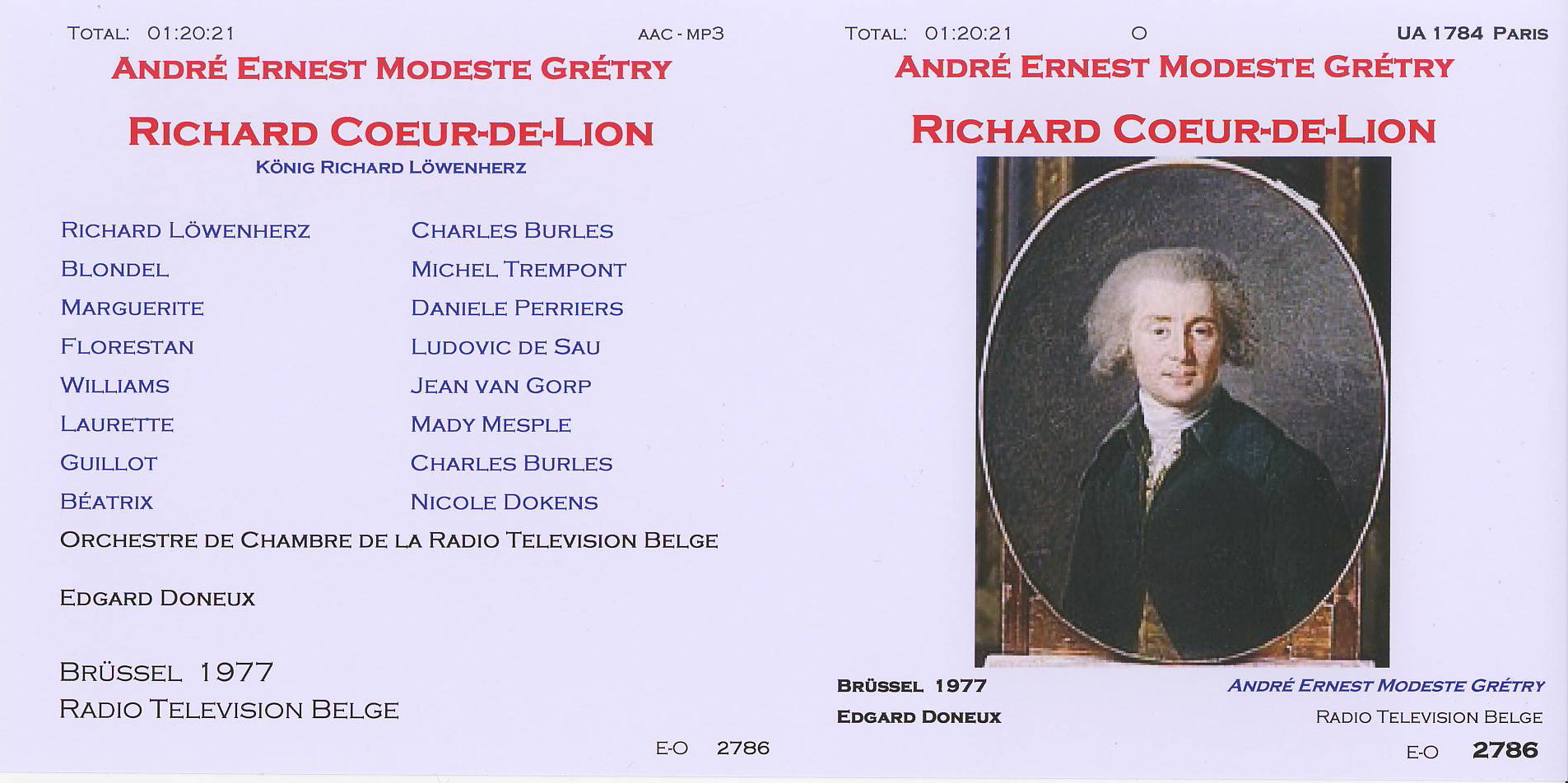 | Grétry - Richard Coeur-de-Lion - 1977 Brüssel dir Edgard Doneux 2786,01 |