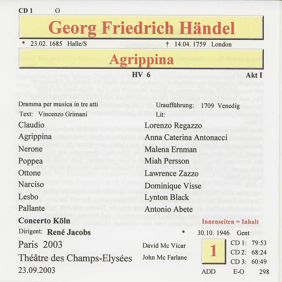 Händel - Agrippina - 2003 Paris dir René Jacobs 0 |