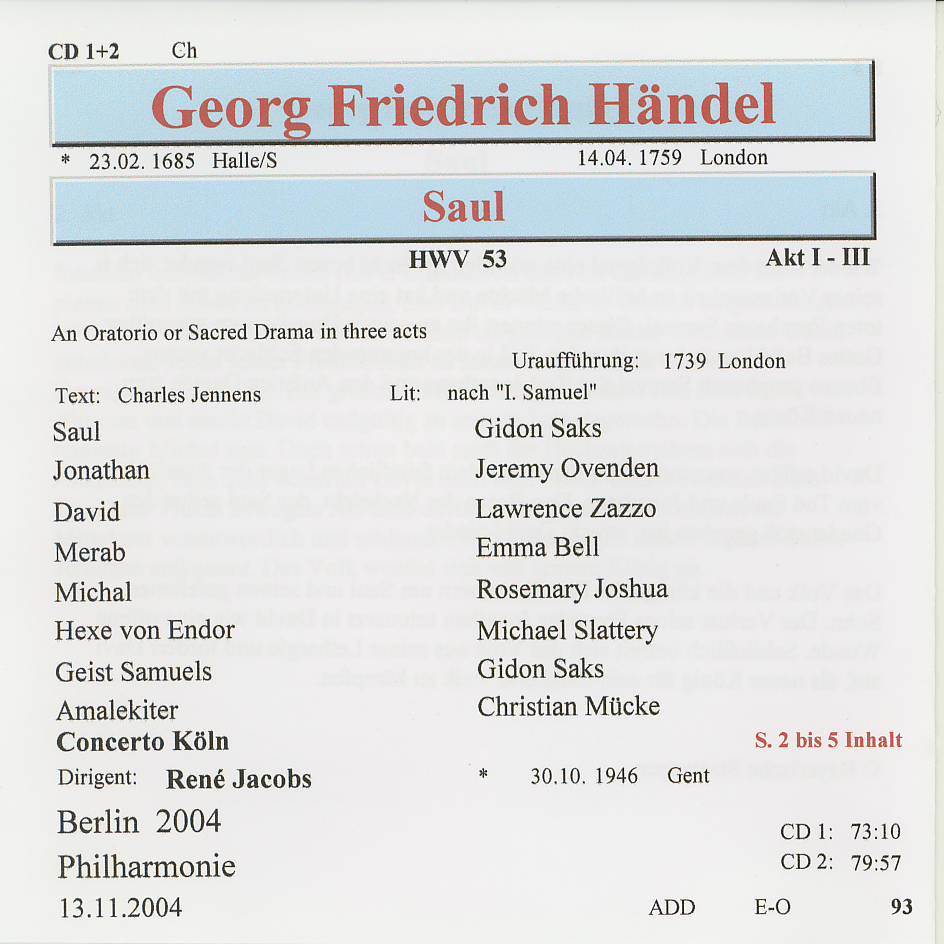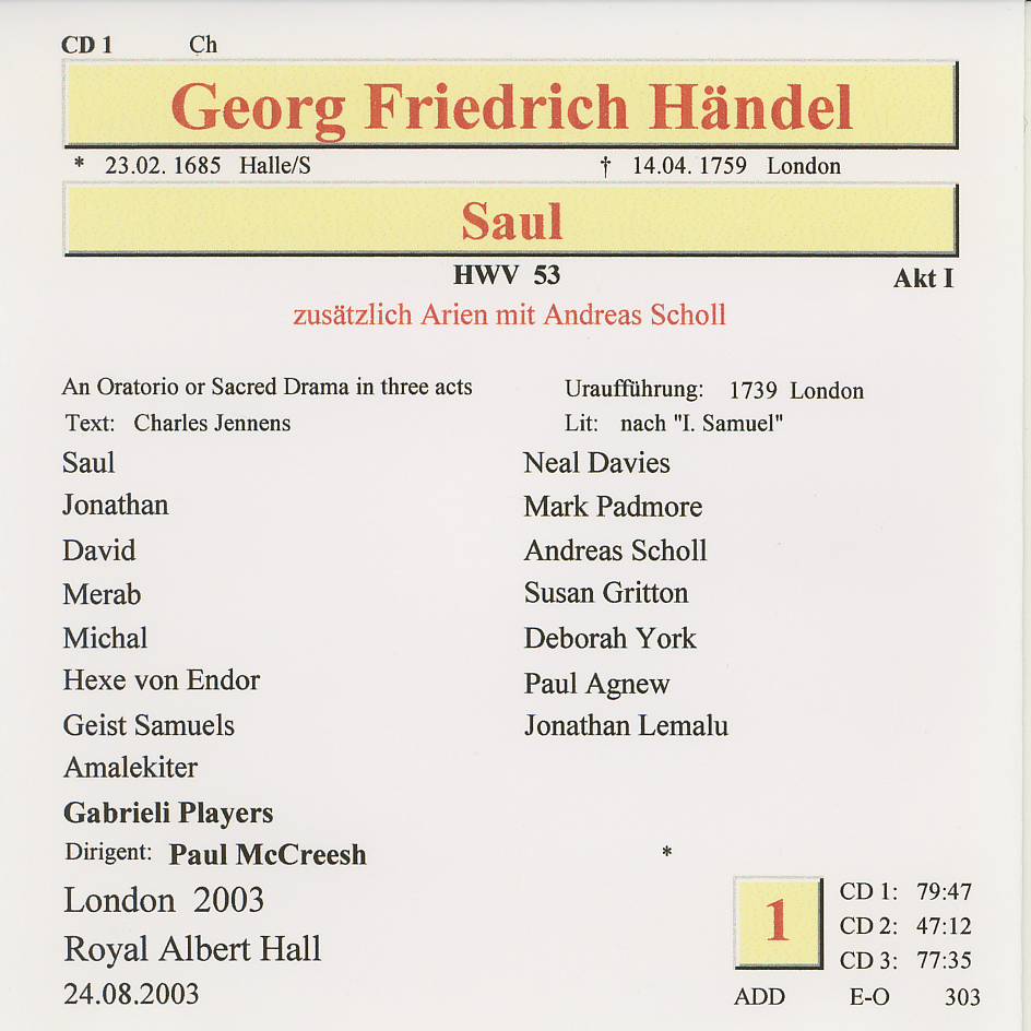 Rarität - Georg Friedrich Händel: Gideon - 2003 Eberbach dir Joachim Carlos Martini 0 |