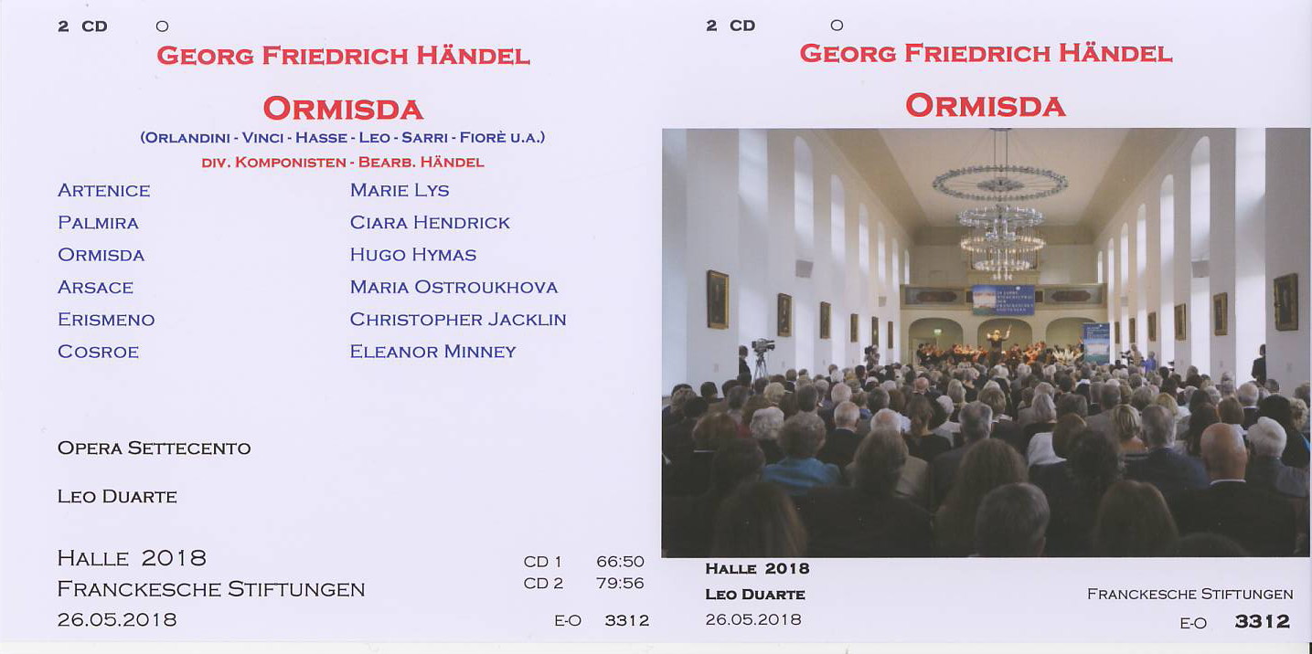 ALMIRA, KÖNIGIN VON CASTILIEN Händelfestspielorchester Cond. Andreas Spering Almira, Königin von Kastilien - Ines Lex Bellante, Prinzessin von Aranda - Melanie Hirsch Edilia, eine Prinzessin - Yeree Suh Raymondo, König aus Mauretanien - Ki-Hyun Park Consalvo, Almiras Vormund - Roland Schubert Osman - Chrisian Zenker Fernando, ein Findelkind - Michael Smallwood Tabarco - |