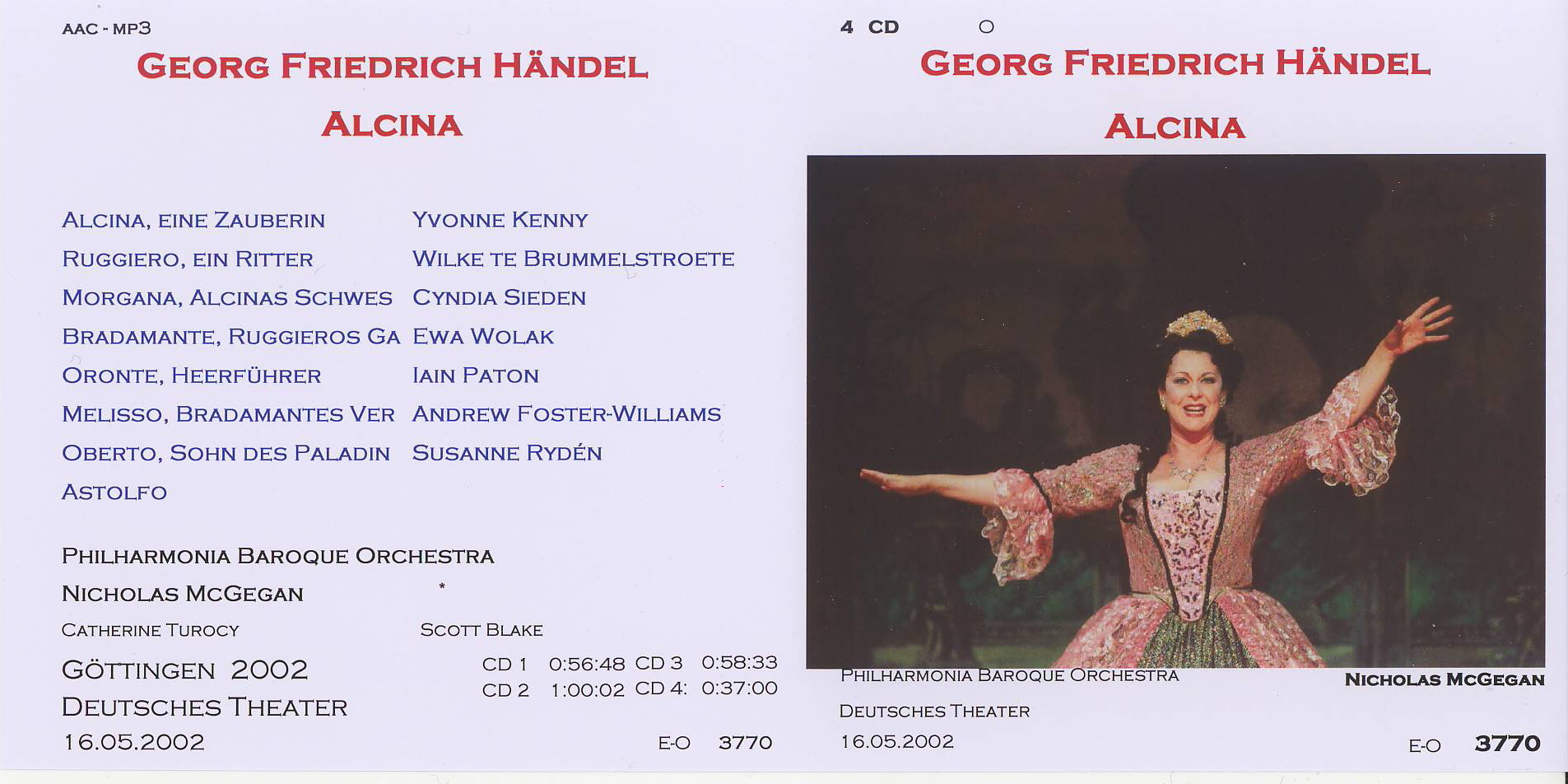 RINALDO Academiy of Ancient Music Cond. Christopher Hogwood Rinaldo, ein Ritter - David Daniels Armida, Königin von Damaskus - Luba Orgonasova Almirena - Cecilia Bartoli Goffredo - Bernarda Fink Eustazio, Gottfrieds Bruder - Daniel Taylor Argante, König von Jerusalem - Gerald Finley Herald (Aroldo) - Mark Padmore - |