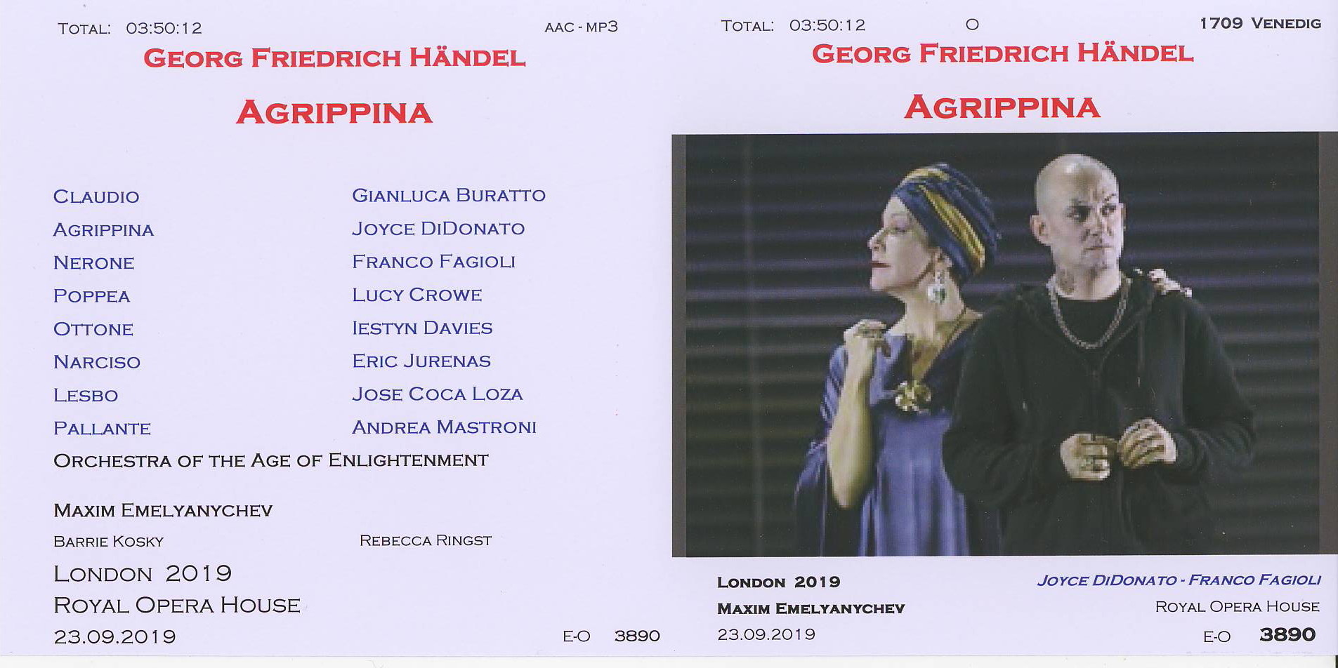 Händel - Agrippina - 2019 London dir Maxim Emelyanychev 3890,01 |