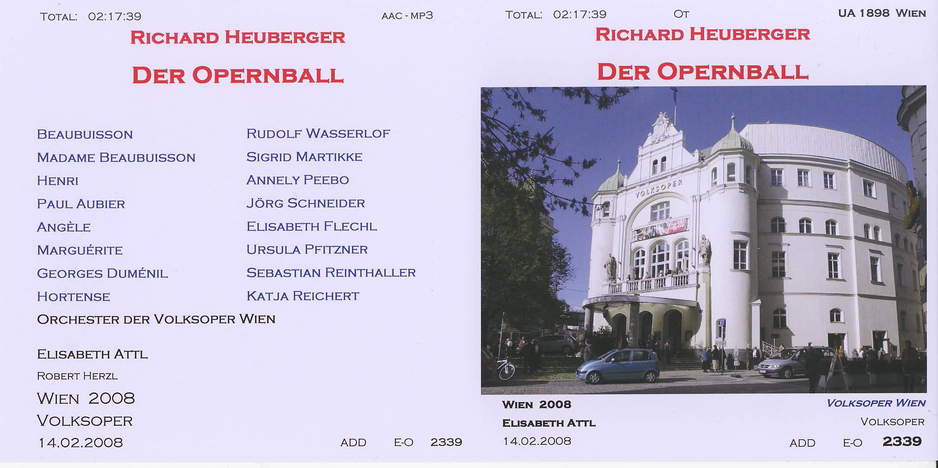 | Heuberger - Der Opernball - 2008 Wien dir Elisabeth Attl 2339,01 |