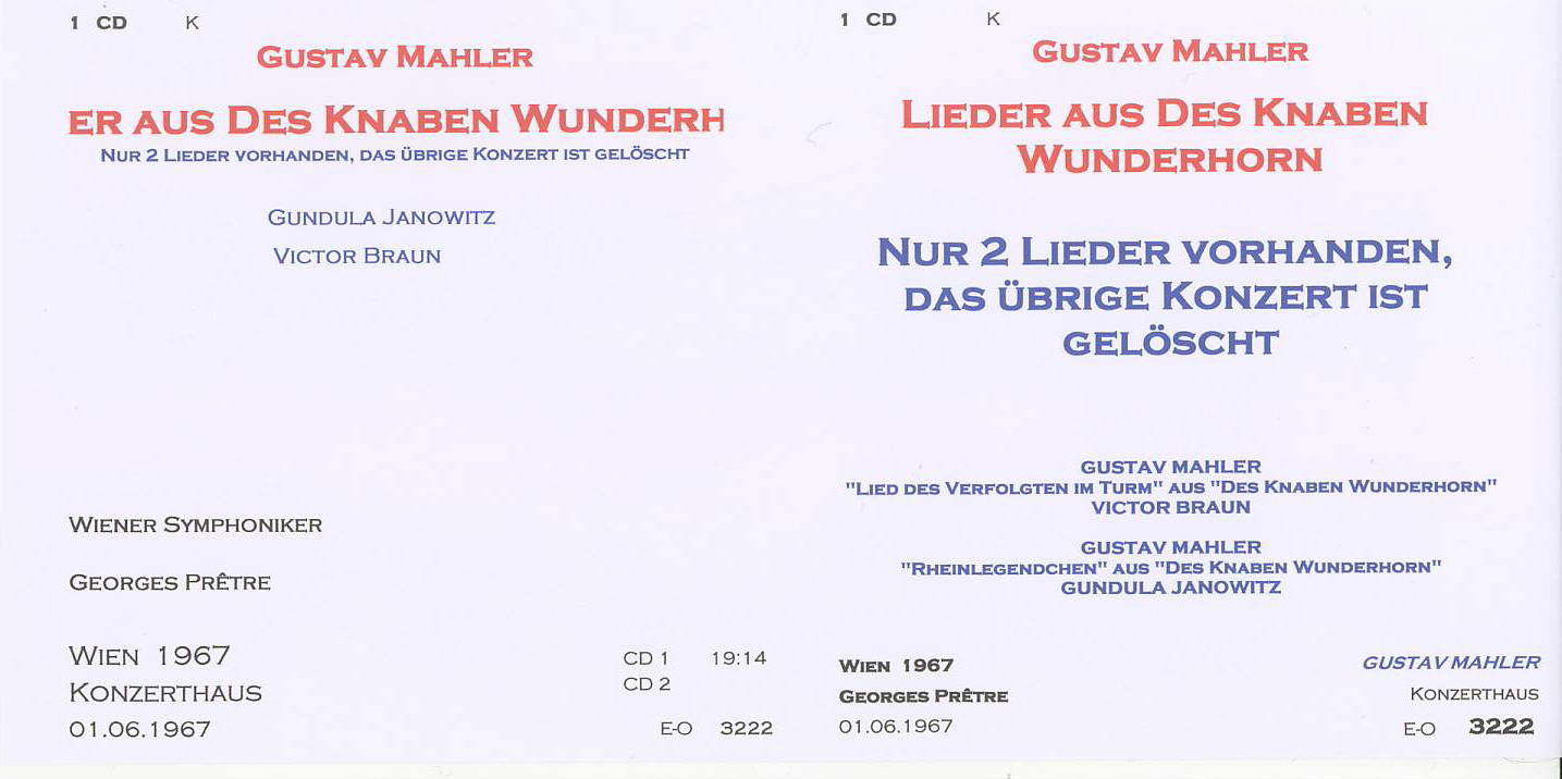 | Mahler - Lieder aus Des Knaben Wunderhorn - 1967 Wien dir Georges Prêtre 3222,01 |