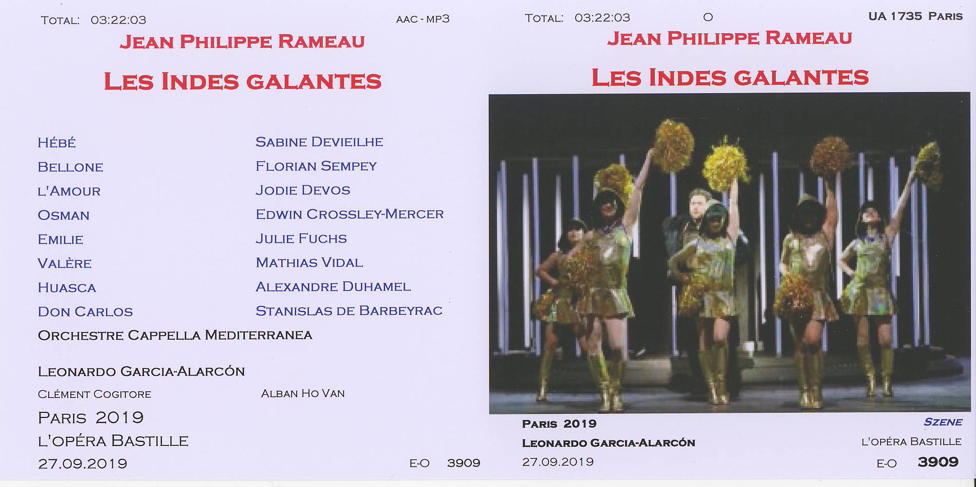 | Rameau - Les Indes galantes - 2019 Paris dir Leonardo Garcia-Alarcón 3909,01 |