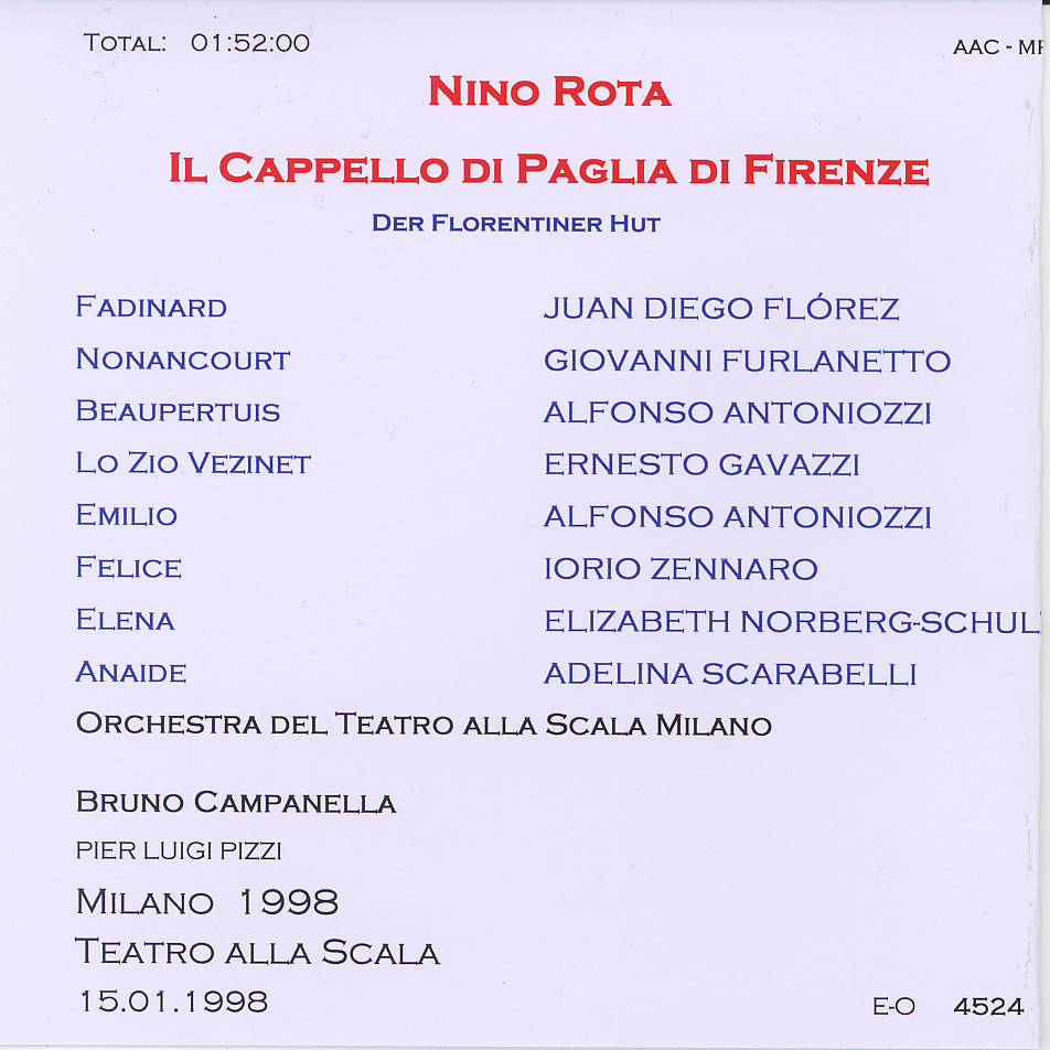 | Rota - Il Cappello di Paglia di Firenze - 1998 Milano dir Bruno Campanella 4524,01 |