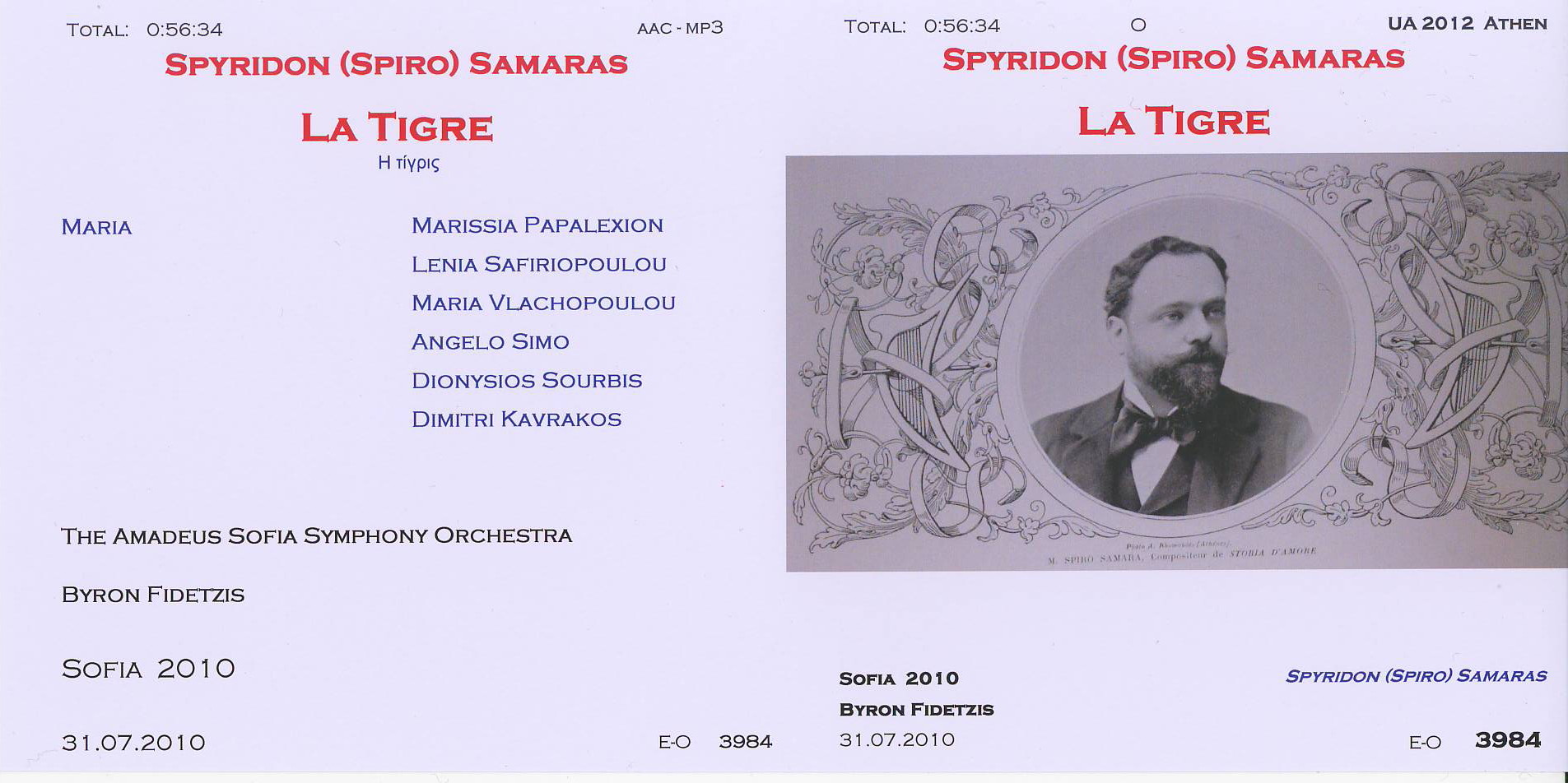 | LA TIGRE The Amadeus Sofia Symphony Orchestra Cond. Byron Fidetzis Maria - Marissia Papalexion - Lenia Safiriopoulou - Maria Vlachopoulou - Angelo Simo - Dionysios Sourbis - Dimitri Kavrakos - - |