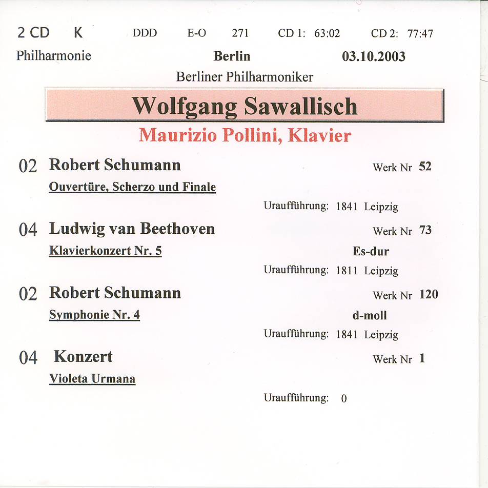 | Schumann - Symphonie Nr. 4 - 2003 Berlin dir Wolfgang Sawallisch 271,03 |