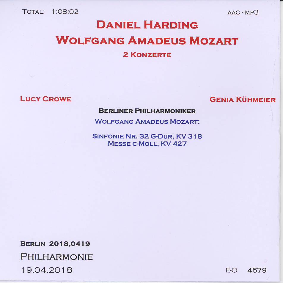 Symphonieorchester des Bayerischen Rundfunks Cond. Daniel Harding - Christiane Oelze - lisabeth von Magnus - Werner Güra - Markus Schäfer - Andreas Hörl - - - |