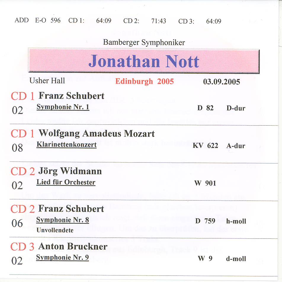 | K - Schubert - Schnebel - Widmann - 1 Bamberg dir Jonathan Nott 0 |